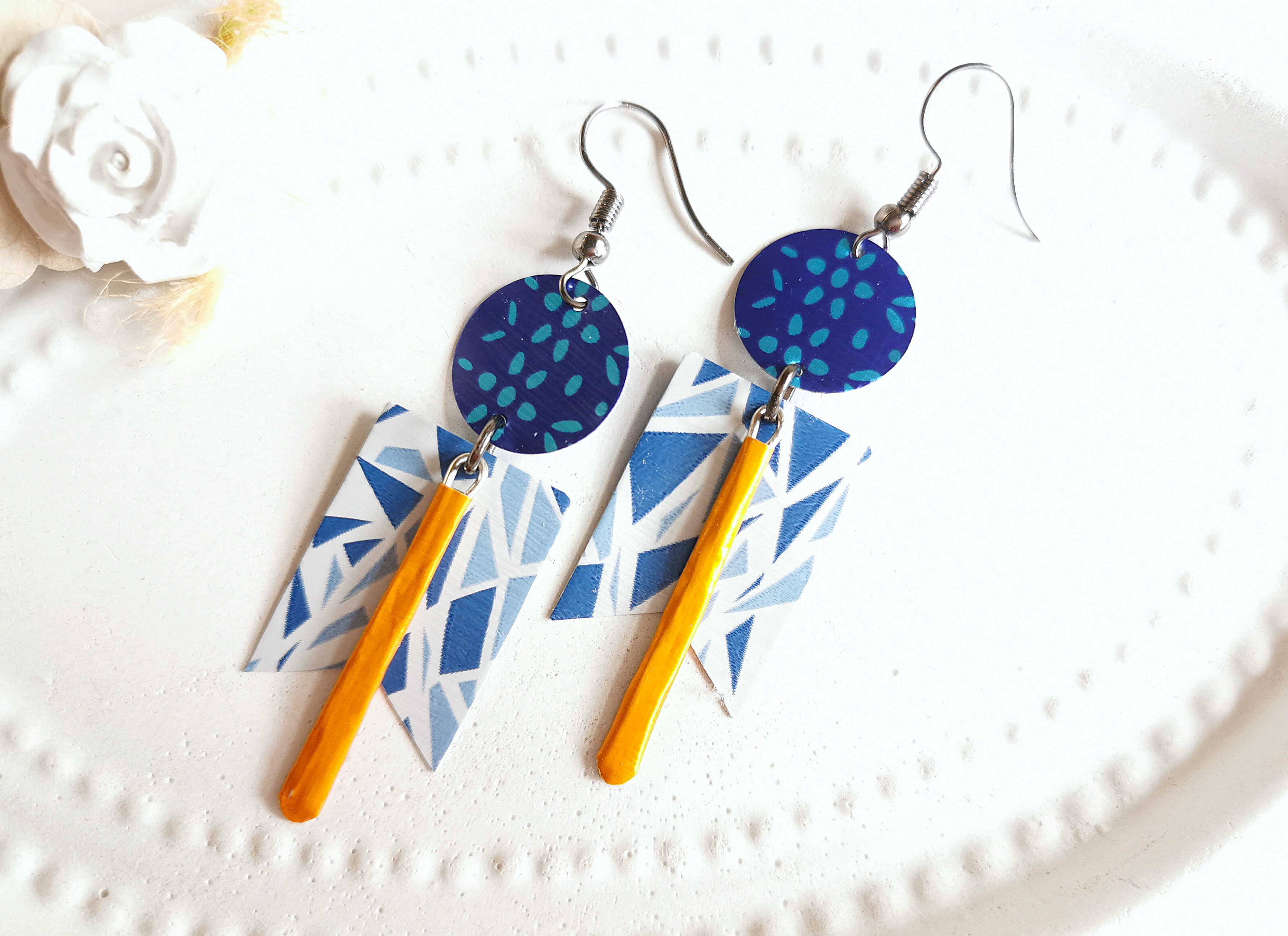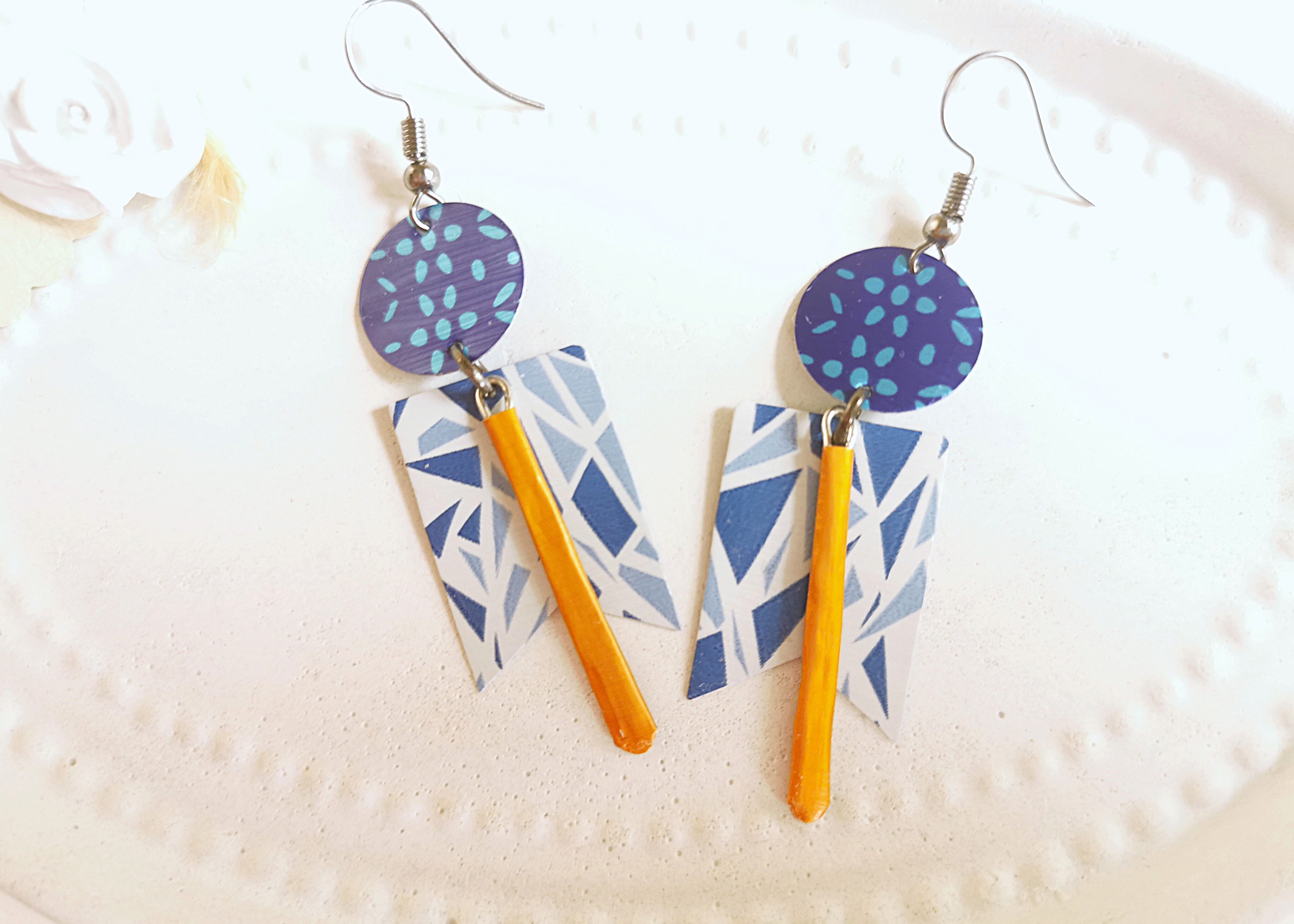 ausgefallene geometrische Kaffeekapsel Ohrringe in bunter Farbkombi im Art Deco Design komplett aus Kaffeekapseln hergestellt!