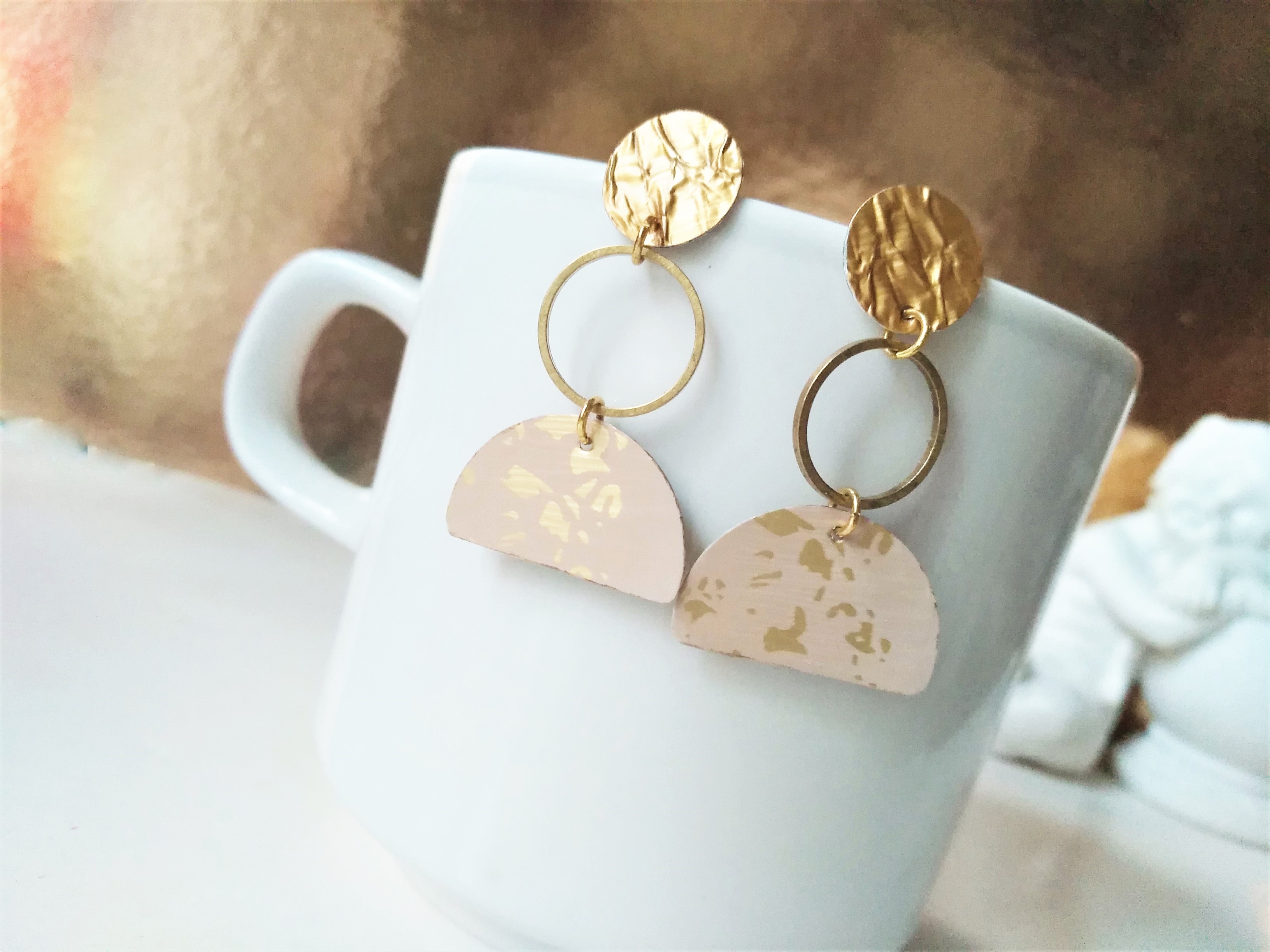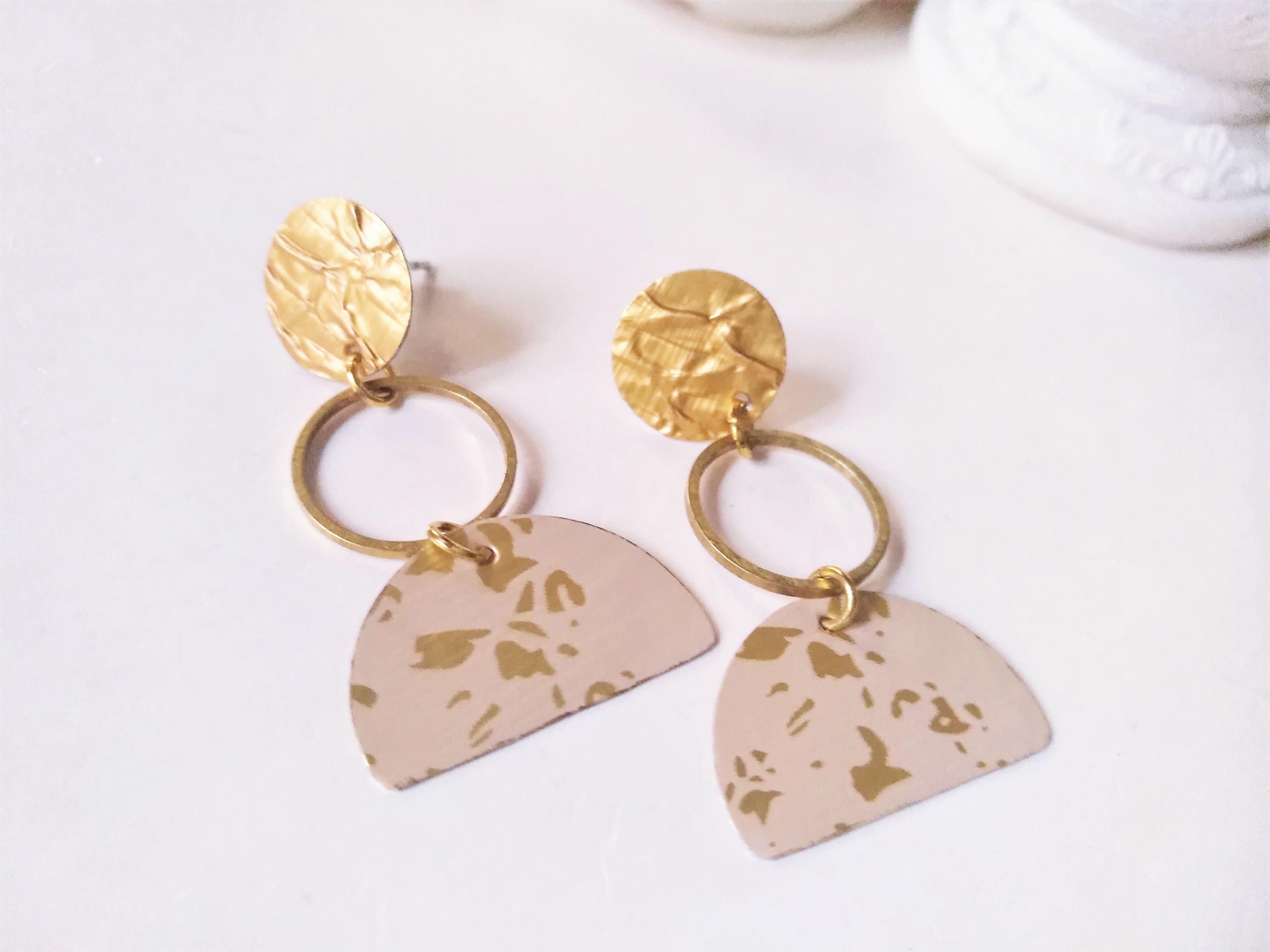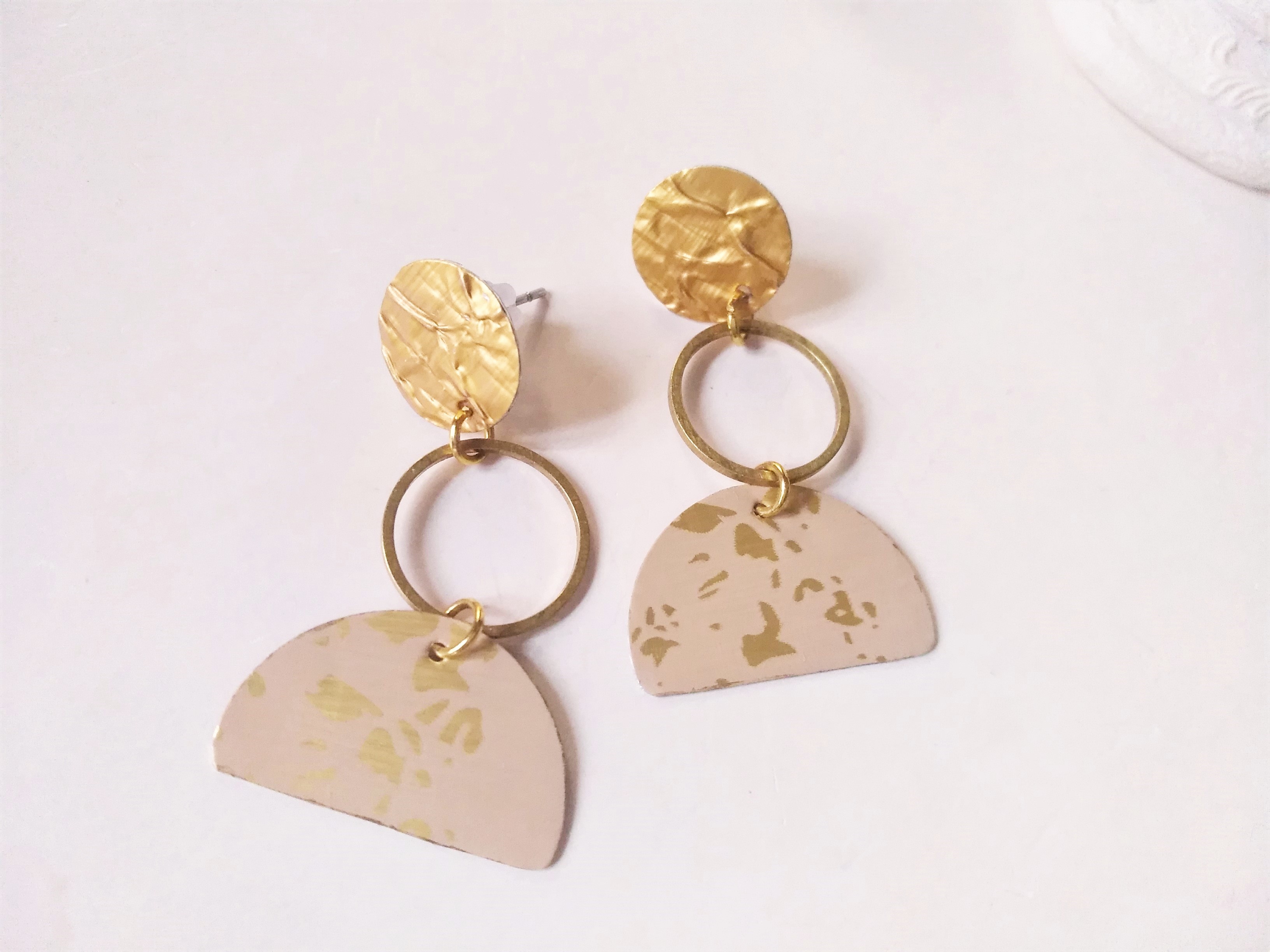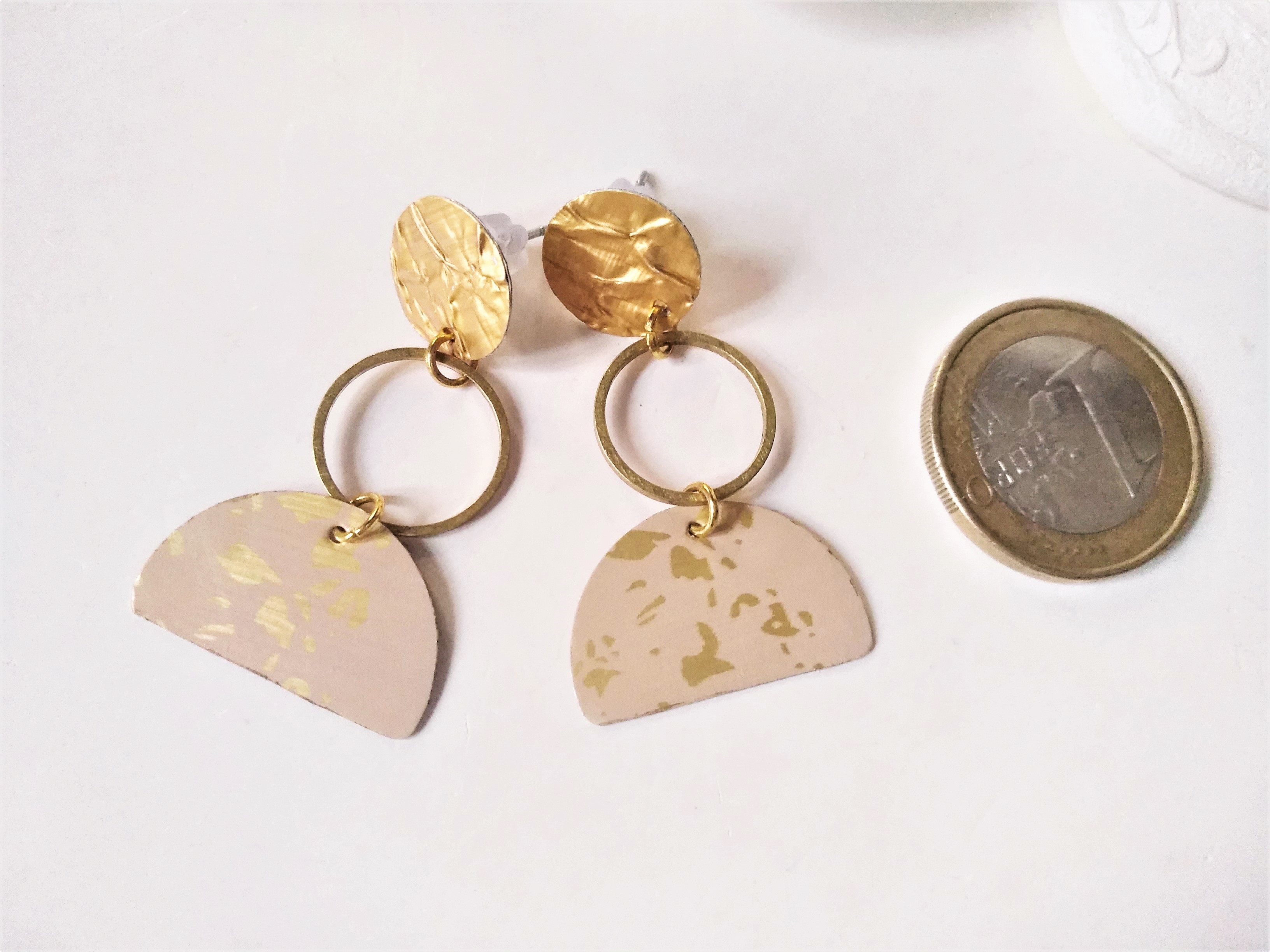 bei diesen eleganten Ohrsteckern (Grundgerüst Edelstahl) sind die Plättchen aus Recycling-Alu gefertigt und mit einem kleinen Messingkreis verbunden - sie sind minimalistisch, modern und extrem leicht zu tragen !!