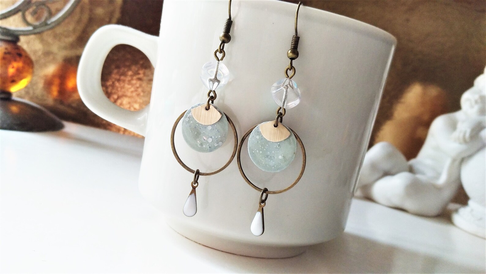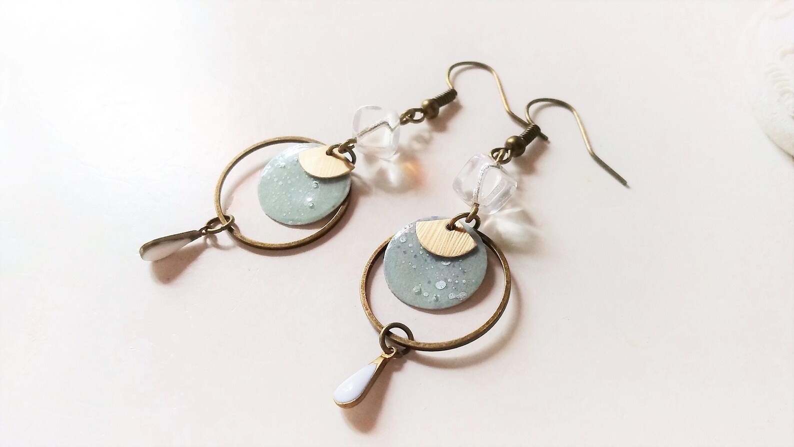 mint Emaille Ohrringe mit bronze Kreis, Japan Papier Ohrringe mint, Recycling Ohrringe aus Kaffeekapseln nachhaltig