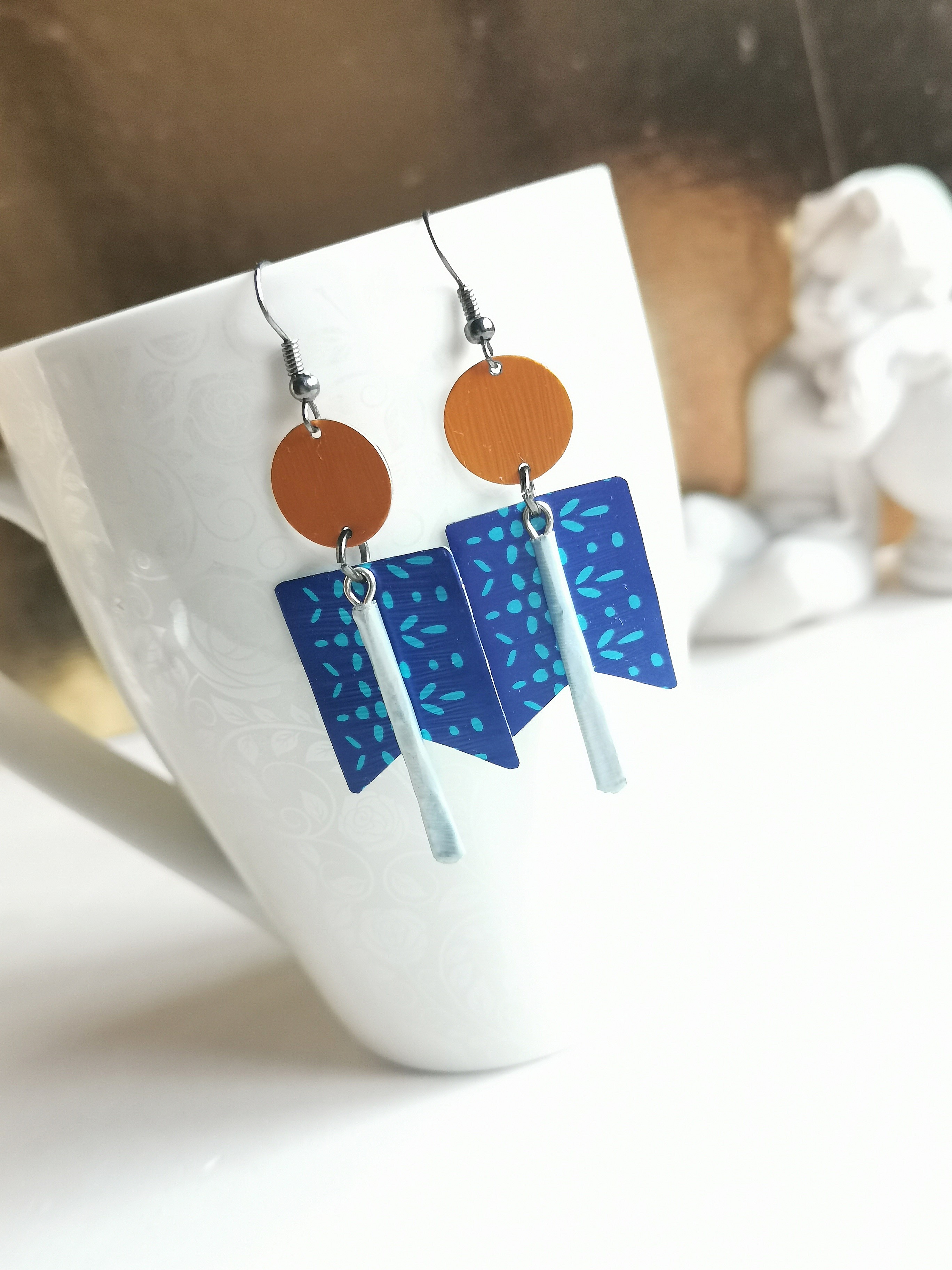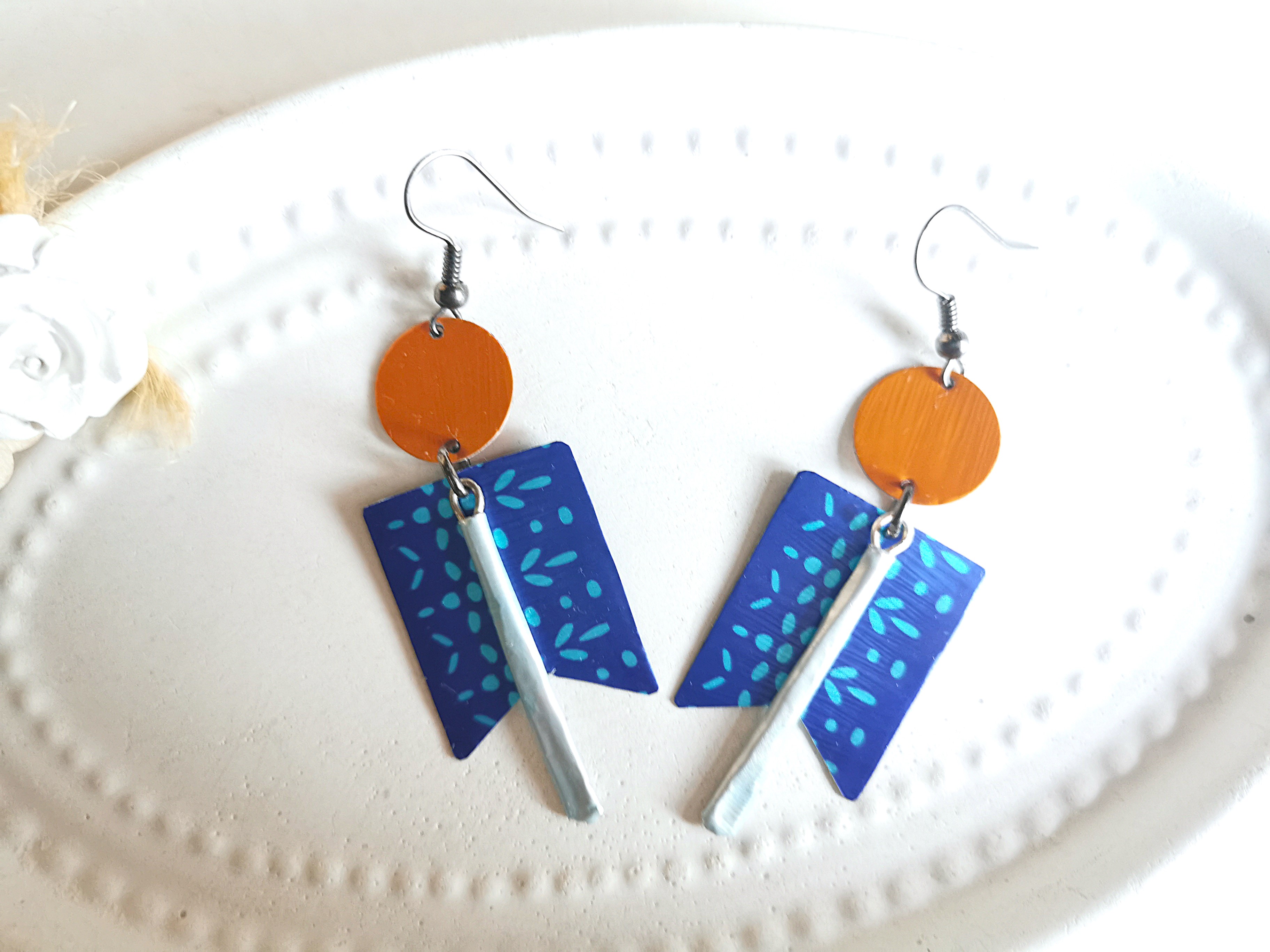 wunderschöne geometrische Upcycling Ohrringe in bunter Farbkombi im Art Deco Design komplett aus Kaffeekapseln hergestellt!