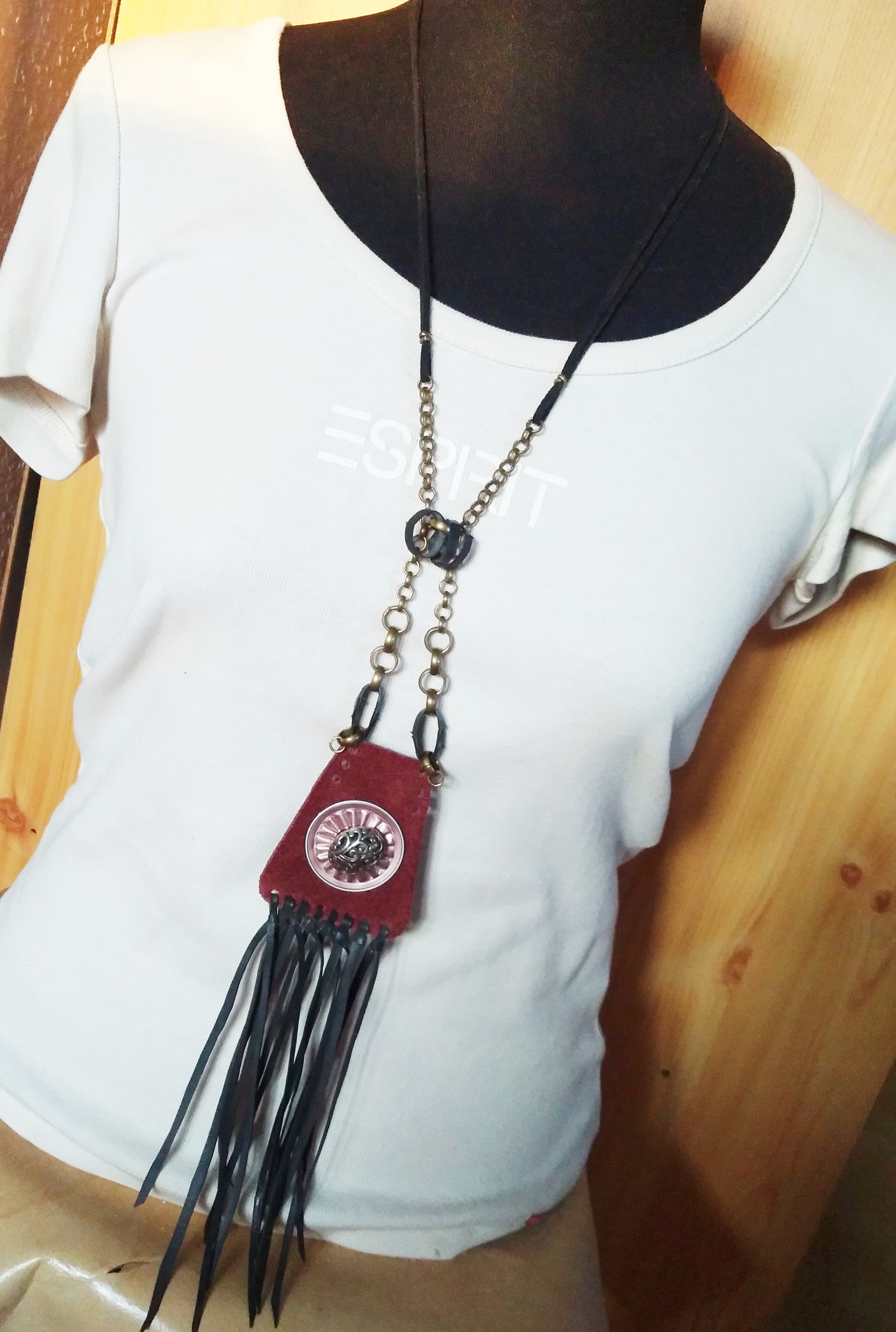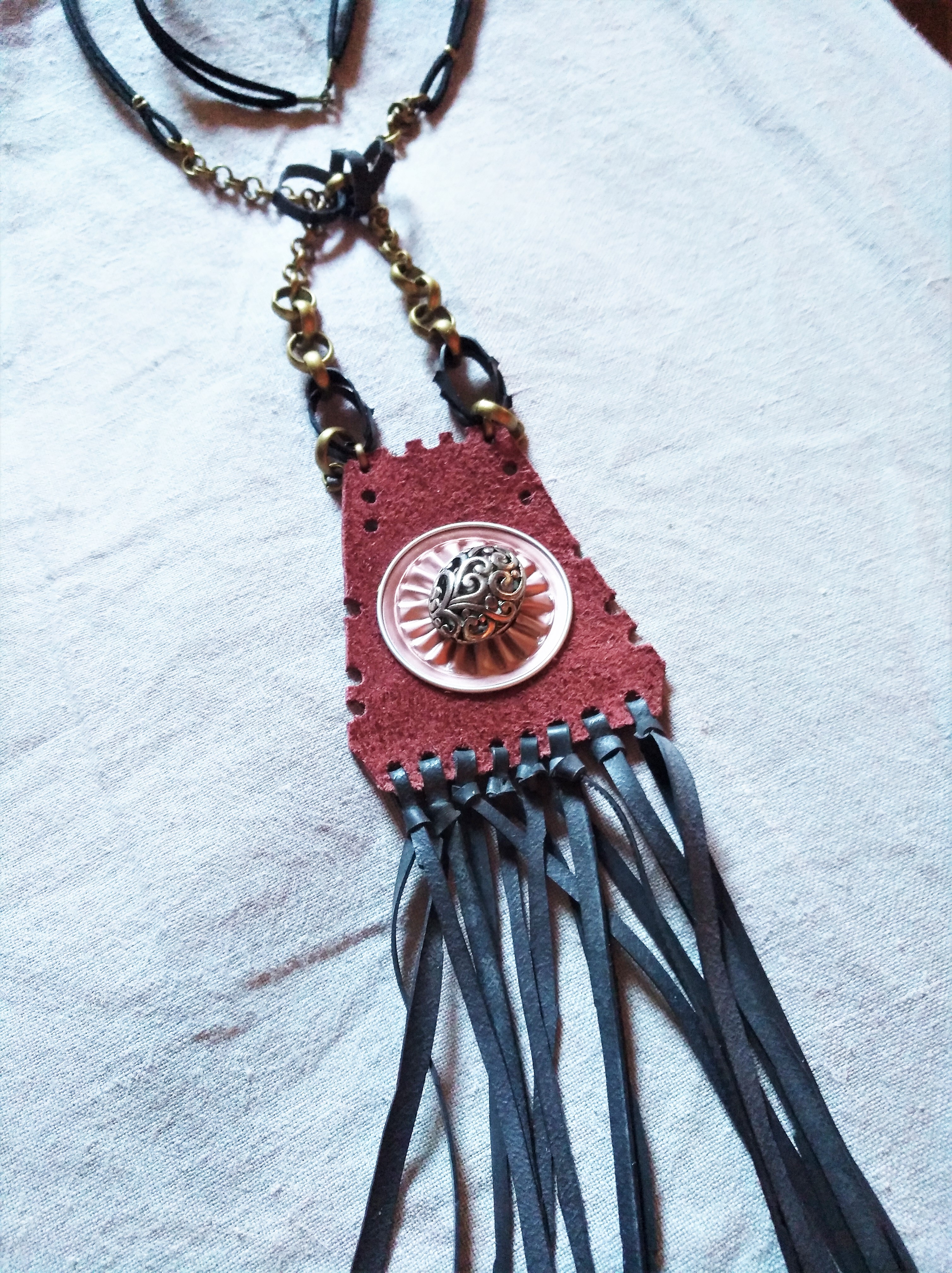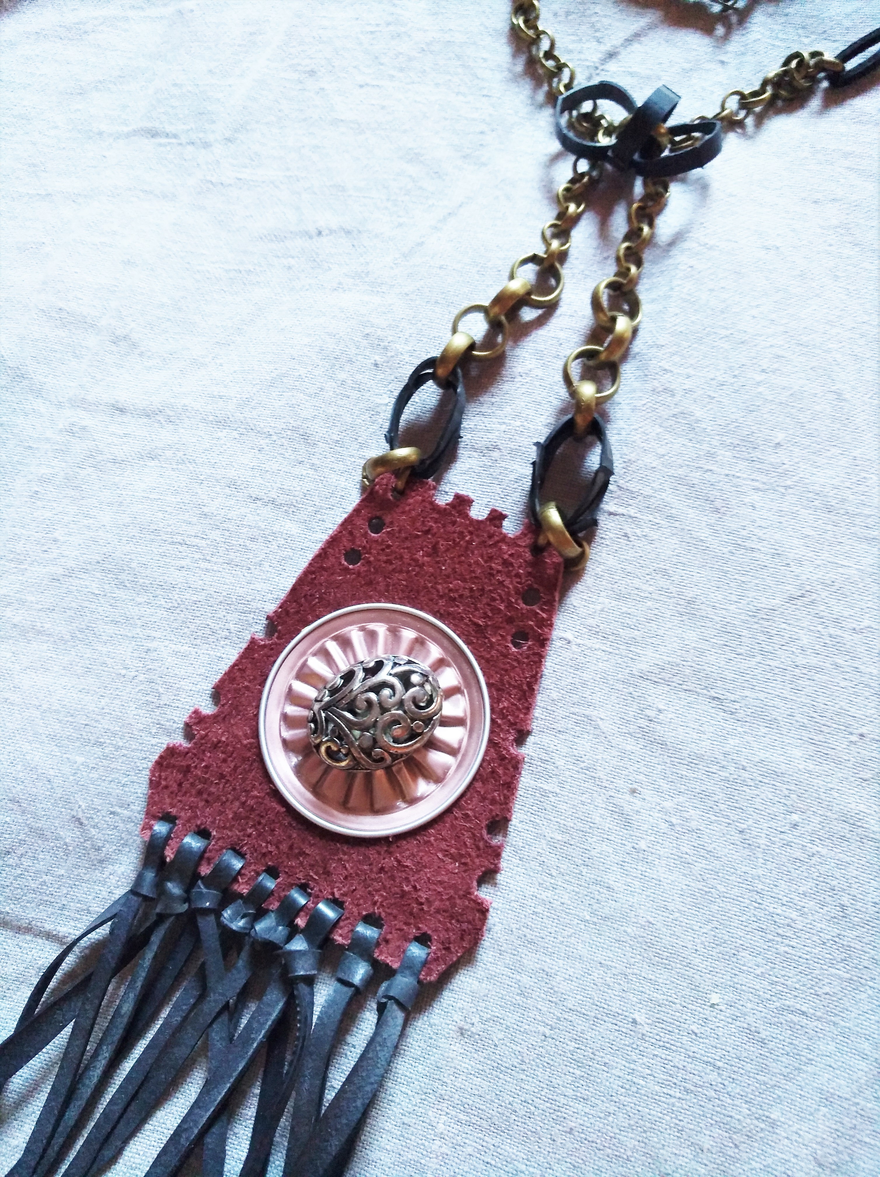 hier bekommt ihr eine Hals-Kette mit vielfältigen Materialien und tollem Design, welche im doppelten Sinn recycelt wurde.
